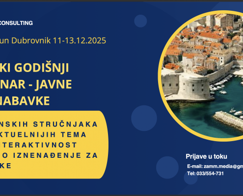 SEMINAR: Dubrovnik 13-15.03.2025. godine "Praktična primjena novih izmjena zakona o javnim nabavkama"