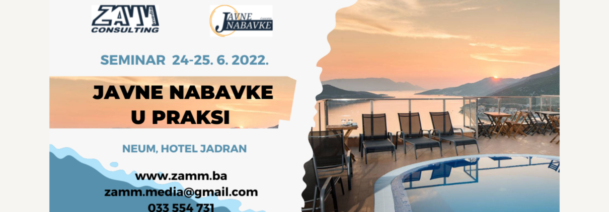 Za praktičare javnih nabavki ZAMM media CONSULTING 24. i 25. juna u hotelu Jadran u Neumu organizira seminar Javne nabavke praksi.