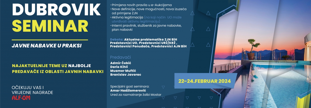DUBROVNIK 22-24.02.2024: PRAKTIČNA PRIMJENA ZAKONA O JAVNIM NABAVKAMA
