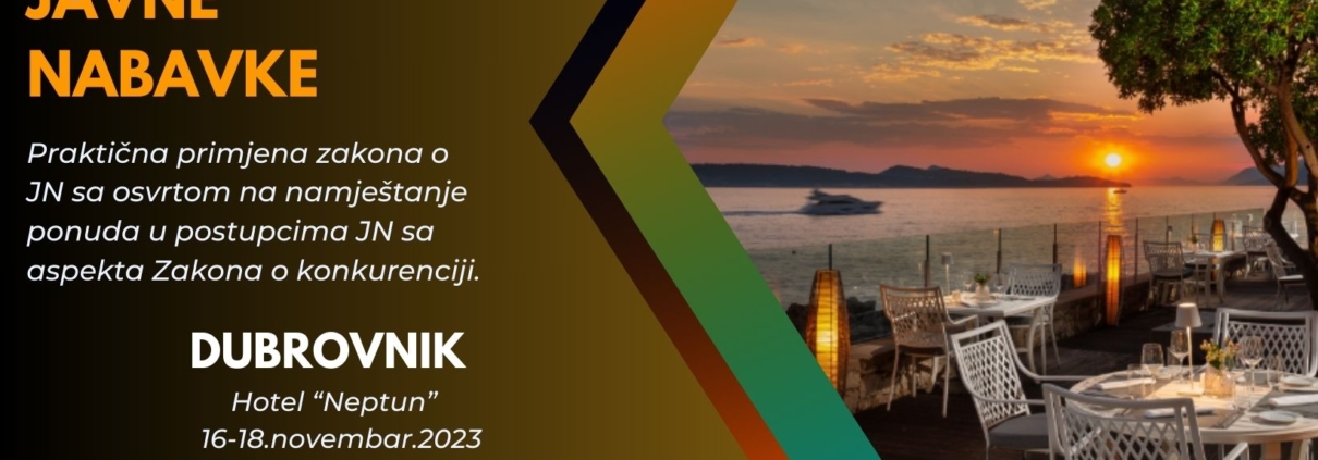 Nove aktelne teme čine agendu seminar “Praktična primjena Zakona o JN sa osvrtom na namještanje ponuda u postupcima JN sa aspekta Zakona o konkurenciji” koji će biti održan od 16-18.11.2023. u hotelu “Neptun” u Dubrovniku.